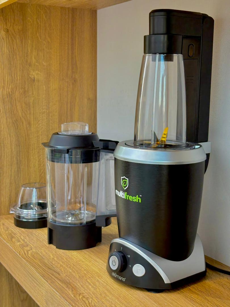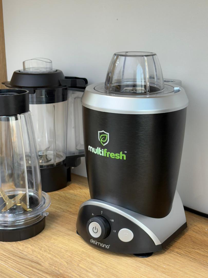 مخلوطکن چندمنظوره Delimano Multi Fresh ترکیبی از قدرت، طراحی حرفهای و چندکاربردیبودن است. این دستگاه با طراحی سوئیسی و تولید با استانداردهای روز، مناسب استفاده روزمره، باشگاه، سفر و آشپزخانههای حرفهای است.
