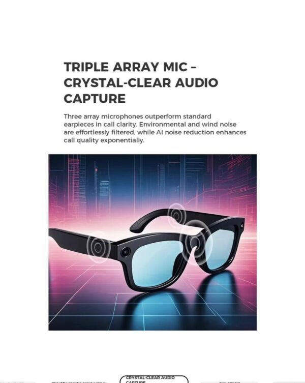 عینک هوشمند M01 ترکیبی از طراحی مدرن و فناوری پیشرفته است. با بهرهگیری از سه میکروفون آرایهای و فناوری حذف نویز مبتنی بر هوش مصنوعی، مکالمات شما را شفاف و بدون مزاحمت نویز محیطی منتقل میکند.