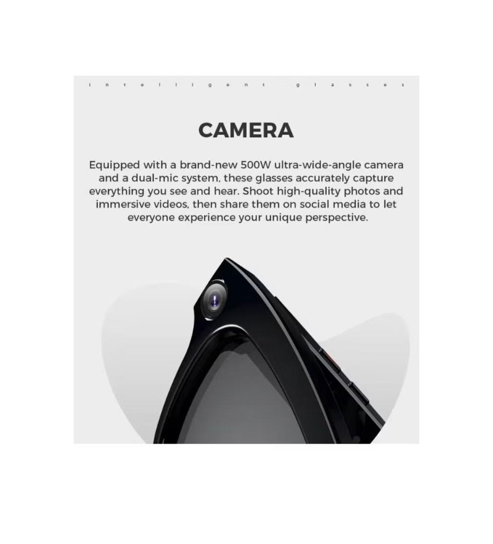 این عینک مجهز به دوربین با کیفیت ۱۰۸۰p برای ثبت لحظات روزمره و همچنین قابلیت پخش موسیقی و گفتوگو است تا بدون نیاز به هدست جداگانه، تجربهای یکپارچه داشته باشید.